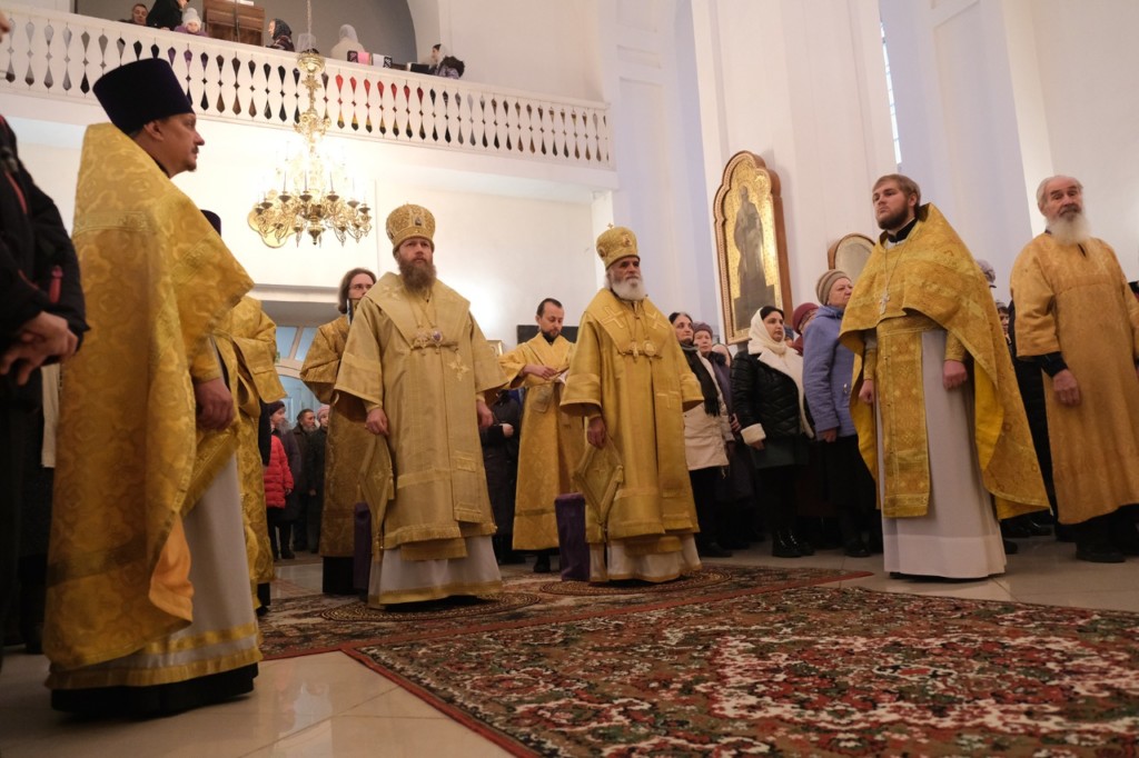 Божественную литургию в Вознесенском соборе г. Ржева возглавил митрополит Тверской и Кашинский Савва. Ему сослужили епископ Ржевский и Торопецкий Адриан, секретарь Ржевской епархии протоиерей Владимир Гревцев, благочинный Ржевского района, настоятель храма протоиерей Константина Чайкин, руководитель административного секретариата Тверской епархии протоиерей Александр Любавин, благочинный города Ржева, настоятель храма Новомучеников и Исповедников Российских протоиерей Валерий Макаров, руководитель службы протокола Тверской и Кашинской епархии иерей Евгения Сизиков, настоятель храма святых Оптинских старцев протоиерей Владимир Евстигнеев, штатный священник Вознесенского собора г. Ржева иер. Сергий Ефимов.