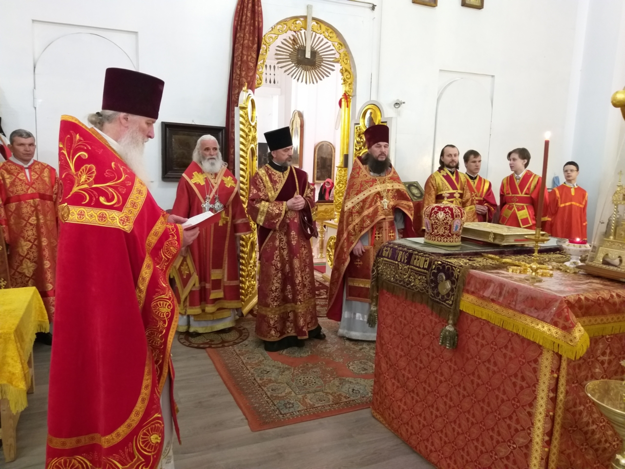 В День праздника Пасхи в соборе служили ночную службу. За богослужением молились Преосвященнейший Адриан, епископ Ржевский и Торопецкий, настоятель собора и благочинный Ржевского собора прот. Константин Чайкин, прот. Геннадий Соминов, иер. Сергий Ефимов, иеродиак. Симеон Кузьминых. Это первый случай, когда на Пасху в Вознесенском соборе совершалась литургия архиерейским чином. За богослужением Преосвященнейший Адриан зачитал пасхальное послание Святейшего Патриарха Московского и Всея Руси Кирилла к архипастырям, пастырям, диаконам, монашествующим и всем верным чадам Русской Православной Церкви, и поздравил с Светлым Праздником Пасхи всех молящихся. В связи с опасностью эпидемии коронавируса все молящиеся в соборе носили на лице медицинские маски и стояли на установленном расстоянии друг от друга. В течение грядущей недели в церкви будут продолжаться совершаться службы по расписанию. Все, кто не может посетить храм, всегда могут отправить записки с просьбой помолиться в храме за богослужением в группу сайта либо позвонить в храм по номеру телефона 84823221951.
