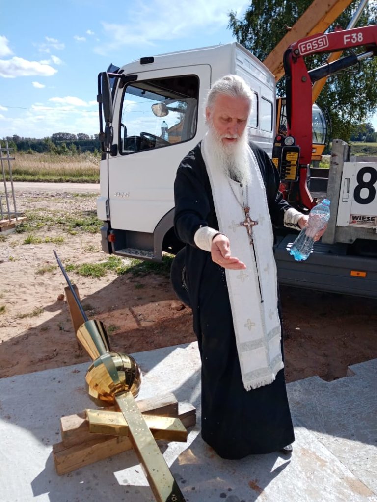 Полная ширина 780 × 1040 пикселей В церкви Живоначальной Троицы д. Санталово Ржевского района установили купола и совершили первое богослужение.