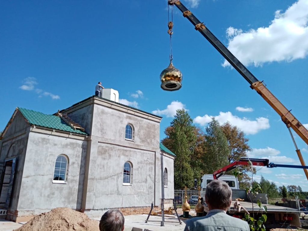 Полная ширина 1040 × 780 пикселей В церкви Живоначальной Троицы д. Санталово Ржевского района установили купола и совершили первое богослужение.