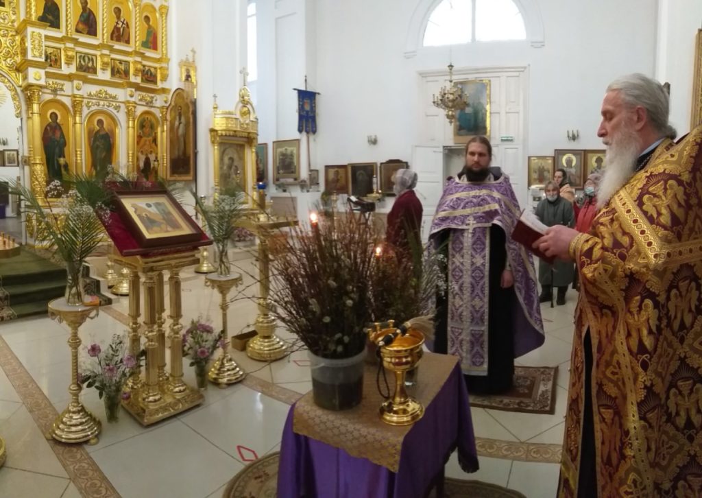 Также, в самый день Вербного воскресения иер. Сергий Ефимов, клирик Вознесенского собора с певчими храма посетили церковь в честь мучениц Веры, Надежды, Любови и Матери их Софии, где совершили чин обедницы. Все, кто готовился к исповеди и Причастию, исповедались и причастились. Во время проповеди священник напомнил собравшимся о важности посещения церкви для христианина, о старинных традициях русского народа, ныне забытых, в Великий пост исповедоваться и приобщаться Святых Христовых Таин.