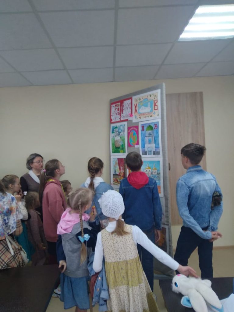 Накануне праздника святых равноапостольных братьев Кирилла и Мефодия учащиеся Воскресной школы с учителями и родителями посетили Пасхальную детскую выставку в Воскресной школе при кафедральном соборе. Нас пригласили сначала на праздник в честь словенских учителей Кирилла и Мефодия, затем и на чаепитие. Во время праздника посмотрели фильм о святых Кирилле и Мефодии, поучаствовали в викторине, играх, познакомились с автором православной книги ,,Чистые родники» Вакиной Л.П., прихожанкой храма в честь иконы Оковецкой Божьей Матери.