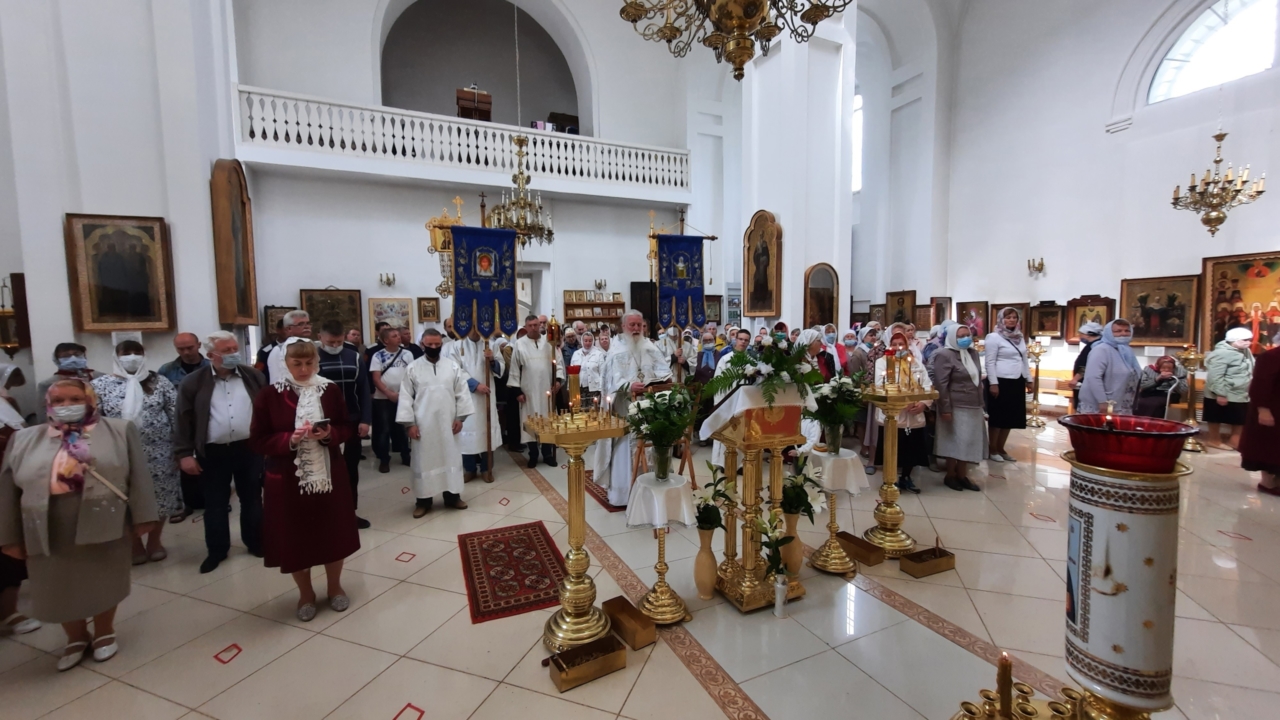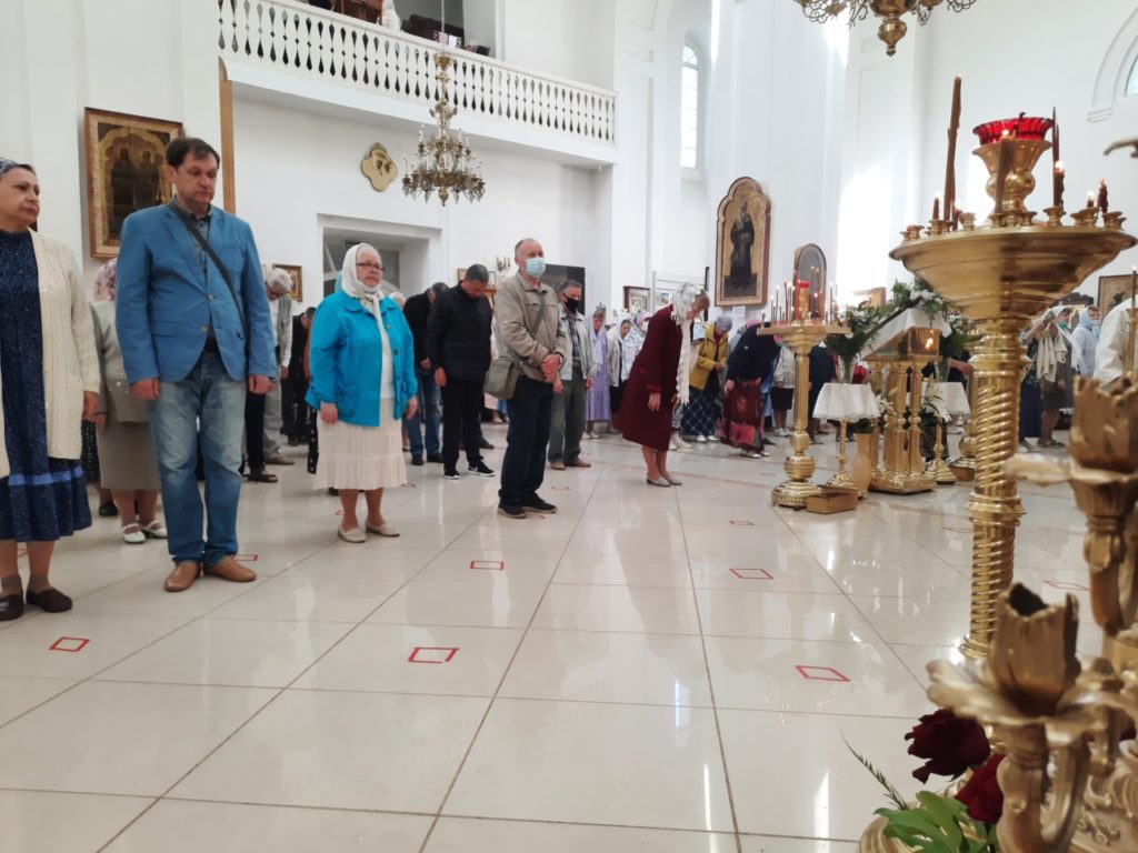 Люди пришли в церковь радостные — много белого в одежде, кругом цветы, а как изысканно украшена праздничная икона.