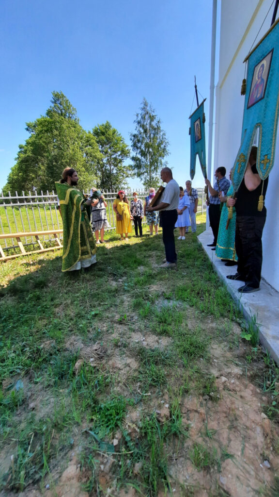 В тот же день в д. Санталово Ржевского района состоялась Божественная литургия с Великой вечерней, которую служил иер.Сергий Ефимов. В деревне построена церковь в честь Живоначальной Троицы, не далеко от места, где стоял еще в прошлом столетии храм с пределом в честь прор. Илии. В честь Престольного праздника после службы совершили крестный ход вокруг храма и провозгласили многолетие. После службы благотворители и строители церкви устроили праздничное угощение для прихожан и гостей церкви. Во время встречи многие вспоминали, как еще в давние времена со всех ближайших деревень приходили на праздник Троицы в храм, исповедовались и причащались, оставляя все житейские дела, а храм становился местом единения и молитвы. Пресвятая Троица, спаси нас!