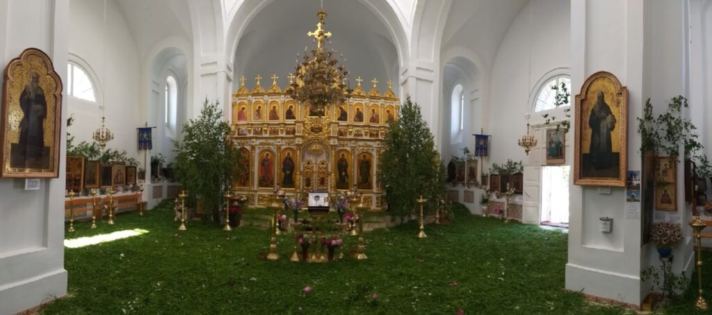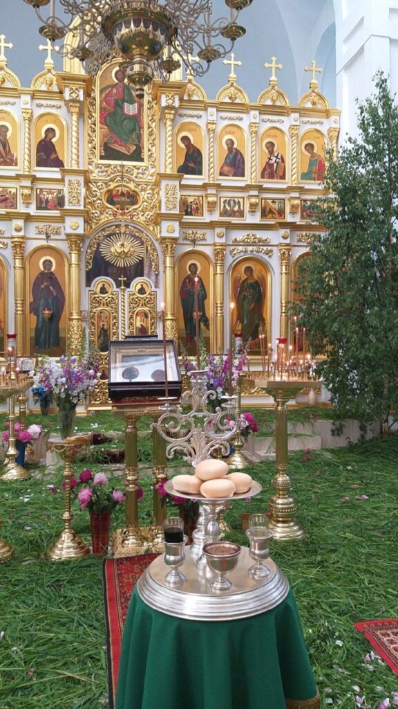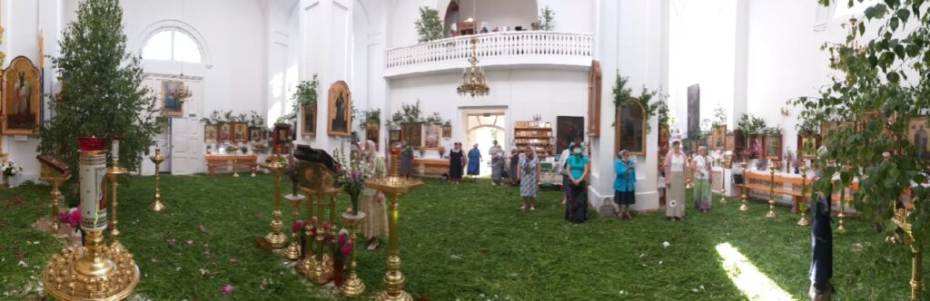 К встрече Праздника готовились в субботу: украшали храм ветками берез, на полу постелили «ковер» из травы и лепестков цветов, праздничную икону украсили венком из живых цветов. В жаркие июньские дни освежающая прохлада внутри собора вместе ароматом трав и цветов действовала благотворно на всех, пришедших на службу. В молитве верующие, вспоминая события Пятидесятницы, просили у Бога послать им Святого Духа Утешителя. За вечерней читались семь коленопреклоненных молитв, разделенных на три части. В конце богослужения, по традиции, священник обратился с пастырским словом к собравшимся, а верующие еще после службу пели молитву Праздника «Царю Небесный».