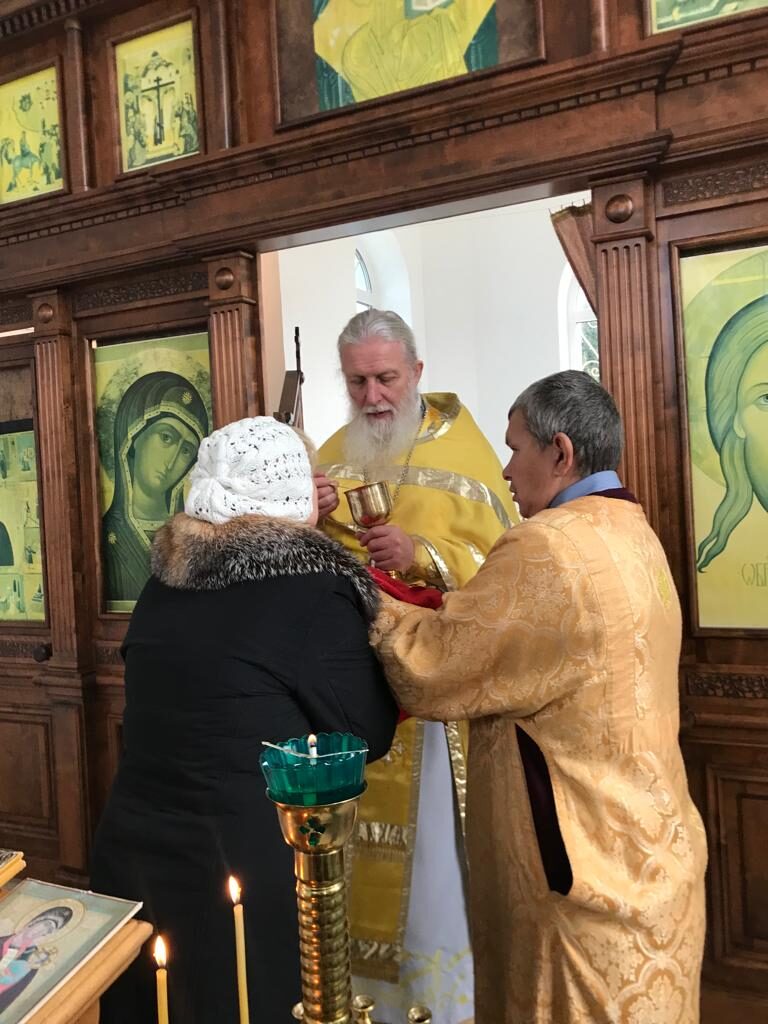 Полная ширина 768 × 1024 пикселей Литургия в храме Рождества Пресвятой Богородицы с. Осуйское