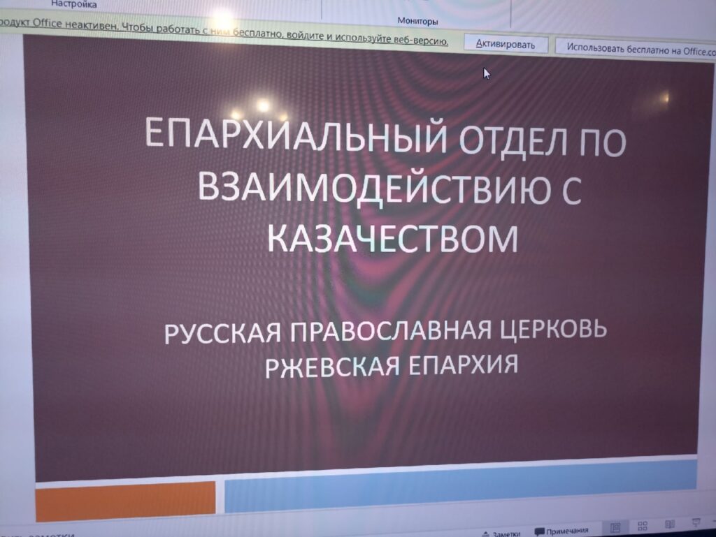 Полная ширина 1280 × 961 пикселей В Ржевской епархии состоялось заседание епархиального отдела по взаимодействию с казачеством при участии атамана и казаков Ржевского казачьего общества.