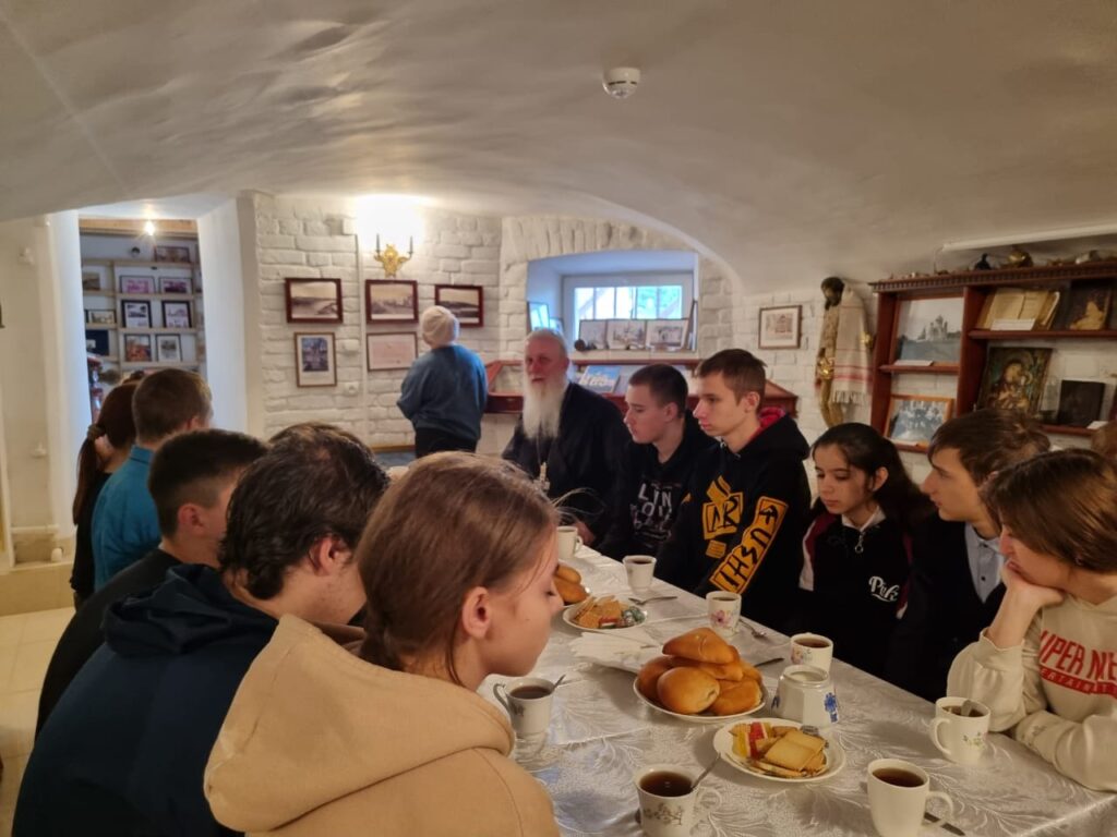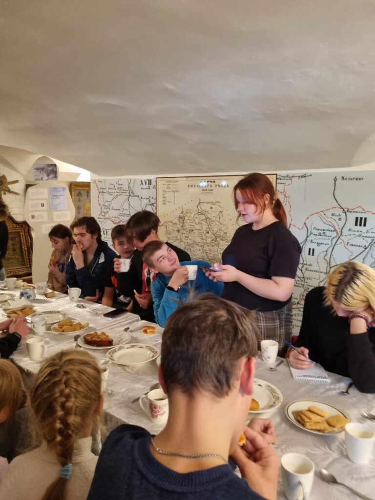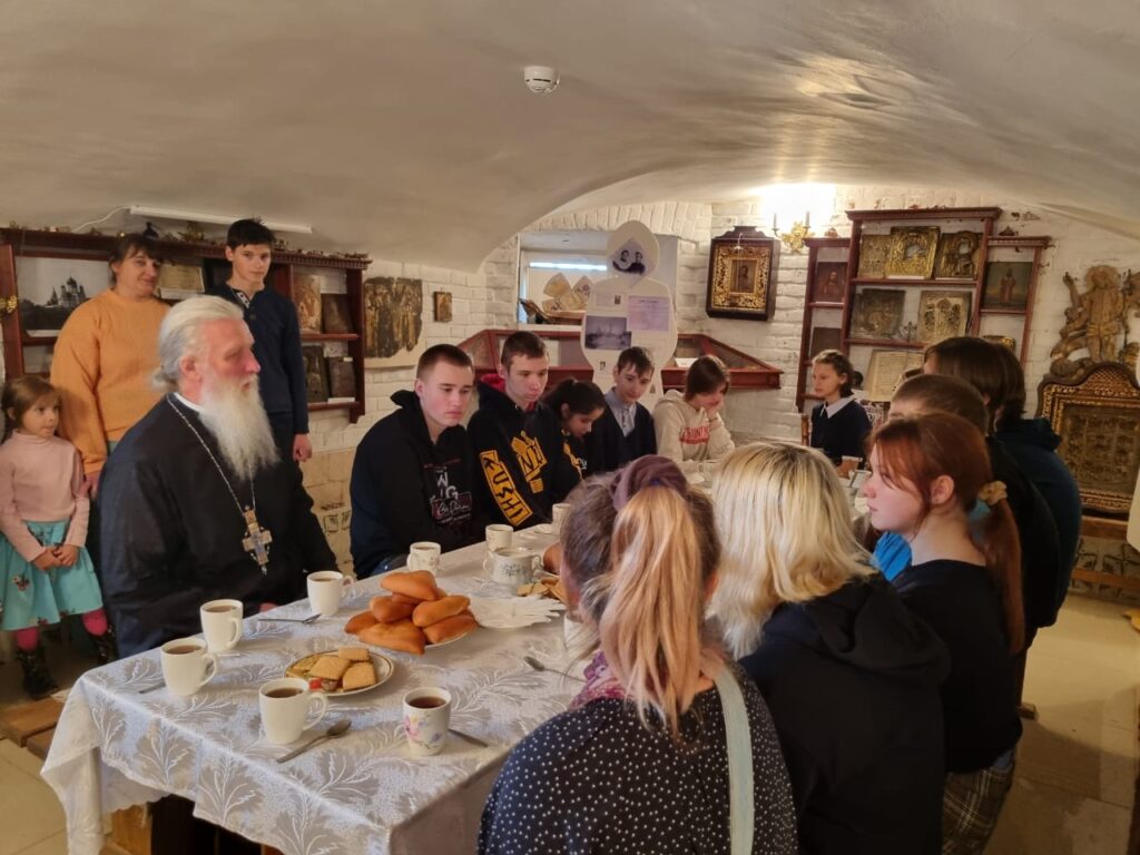 В музее «Православные святыни земли Ржевской» при Вознесенском соборе по окончании работ состоялся душевный разговор за чашкой чая с ароматными пирогами. Ребята рассказывали истории своих родных, чьи судьбы опалило военное лихолетье; читали стихи о Ржеве. В беседе принял участие настоятель Вознесенского собора протоиерей Константин Чайкин, он рассказал о празднике Покрова Пресвятой Богородицы. Вместе с ним школьники и воспитанники воскресной школы обсудили дальнейшие совместные мероприятия, среди которых работы по благоустройству воинских захоронений в Ржевском районе и расчистка руинизированных останков храмов.