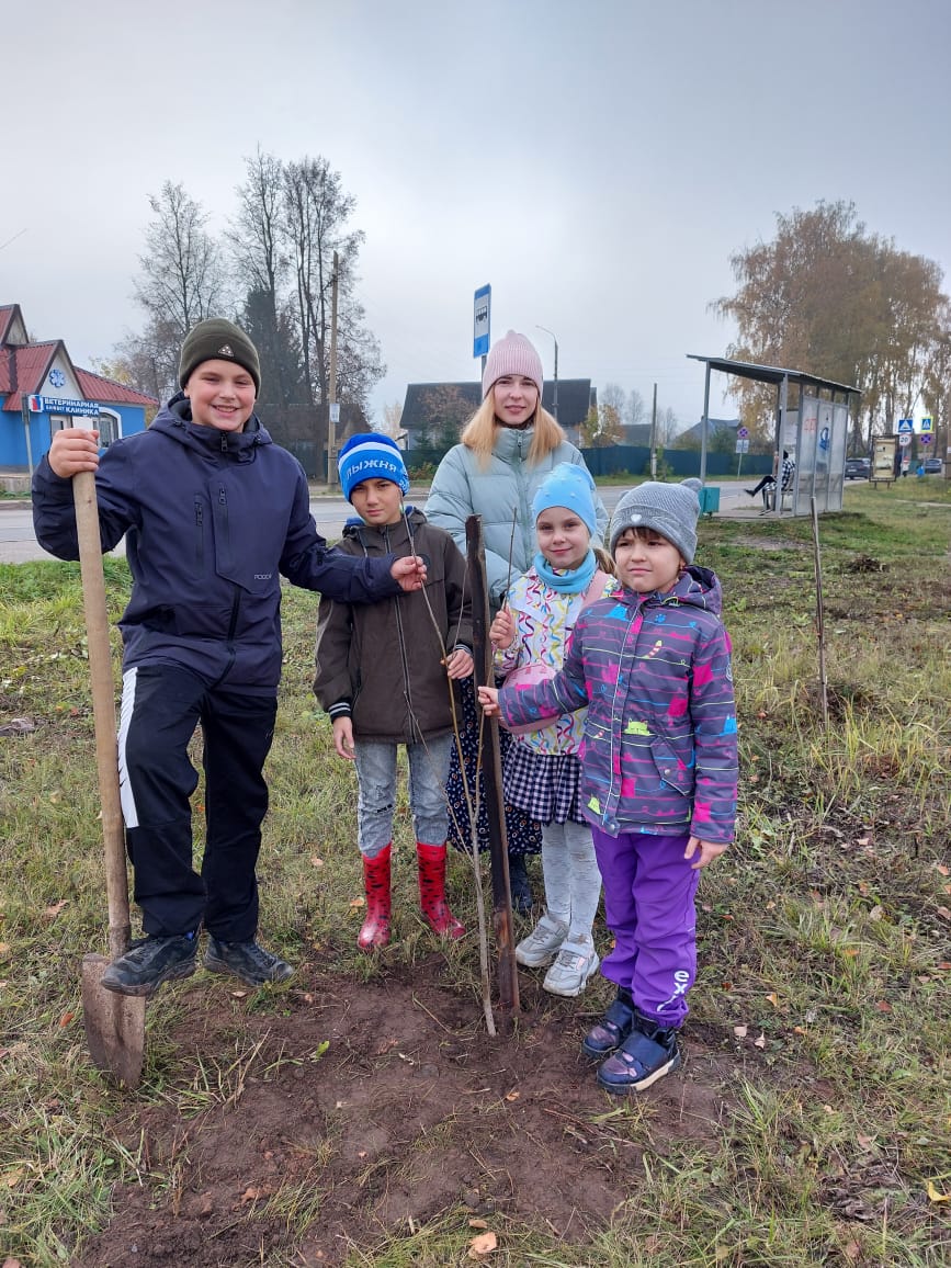 Ребята почистили территорию вокруг рябинок, заменили засохшие новыми саженцами. На самом берегу высадили молодые дубки.