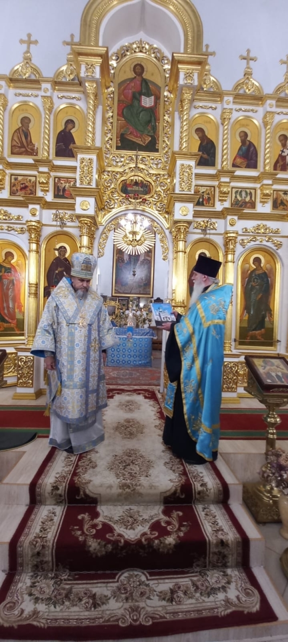 Праздничное Всенощное бдение служил преосвященный Силуан, епископ Ржевский и Торопецкий. Ему сослужили благочинный Ржевского района, настоятель Вознесенского собора прот. Константин Чайкин, благочинный г.Ржева прот. Валерий Макаров, настоятель Кафедрального собора г.Ржева иер. Сергий Макаров, клирик Вознесенского собора г. Ржева иер. Сергий Ефимов. За всенощным бдением еп. Силуан вручил церковные награды прихожанам Вознесенского собора. Медали в честь Оковецко-Ржевской иконы Божией Матери 3 — ей степени удостоились Баскакова Валентина и Гзовская Ирина. Архиерейские грамоты еп. Силуан вручил прихожанам храма Попову Алексею и Фофонову Алексею. Настоятель Вознесенского собора г.Ржева прот. Константин Чайкин отметил, что епископ Силуан впервые совершает богослужение в Вознесенском соборе в сане епископа, от лица храма прот. Константин вручил еп. Силуану икону Божией Матери «Казанская».