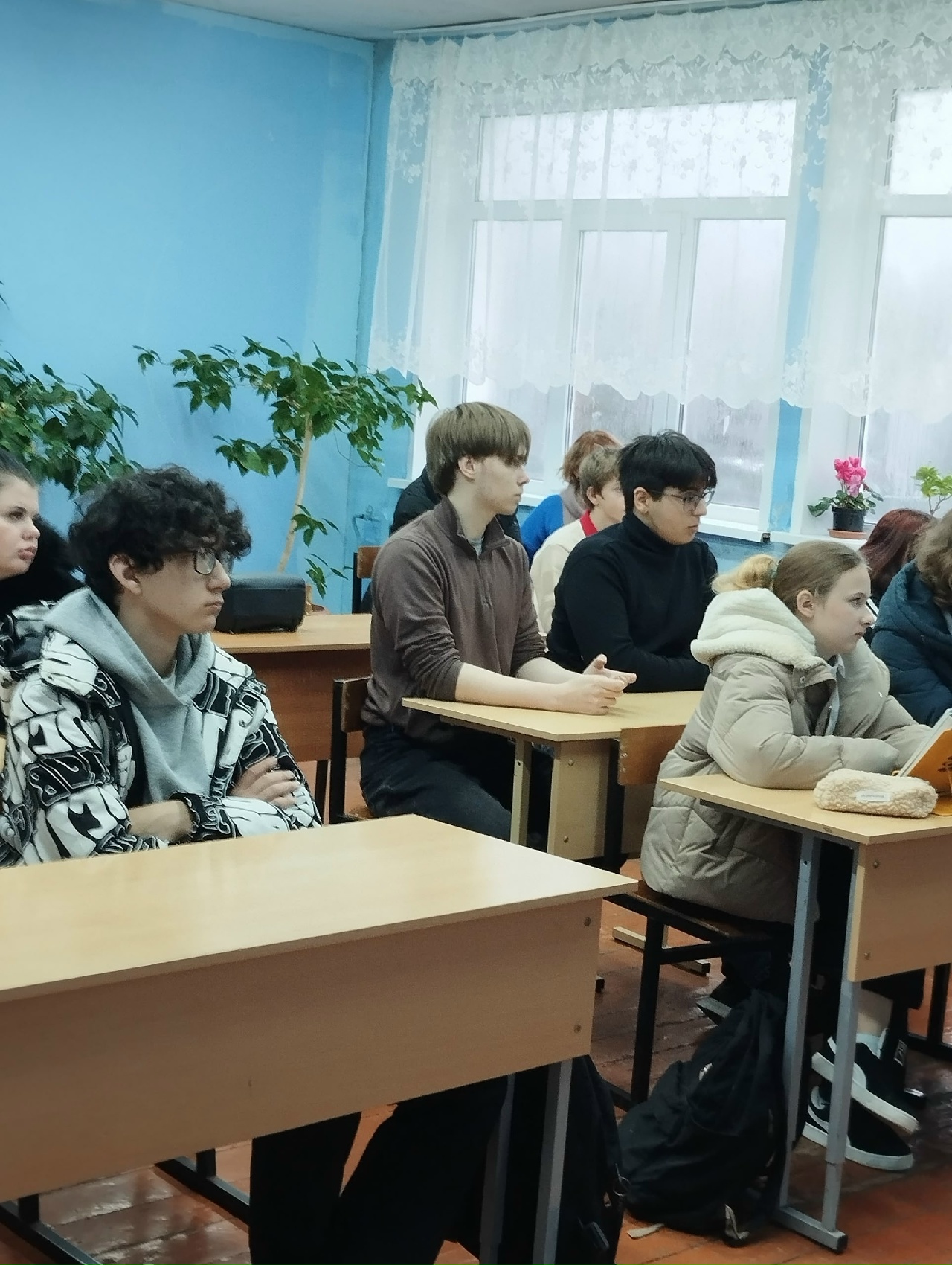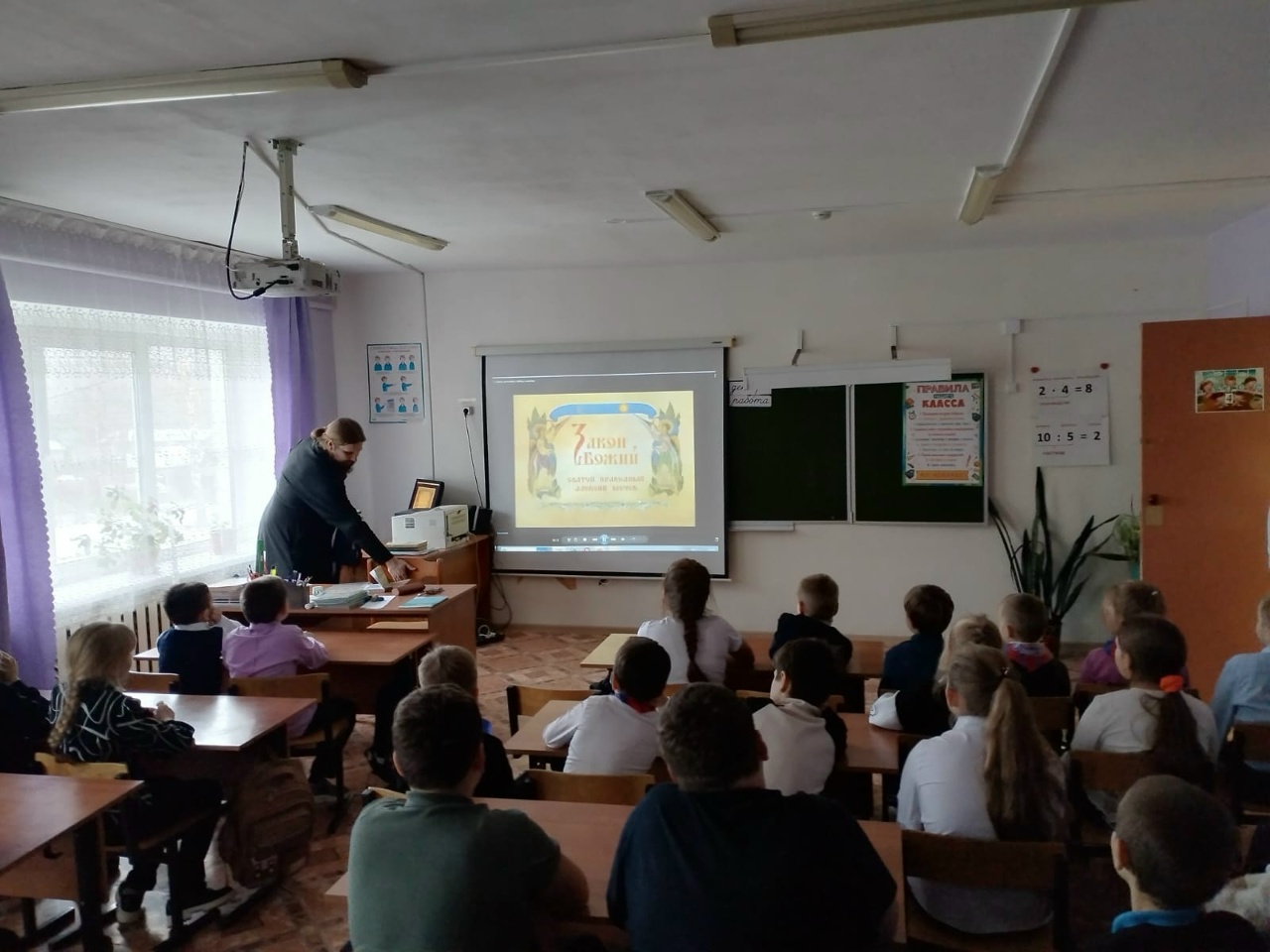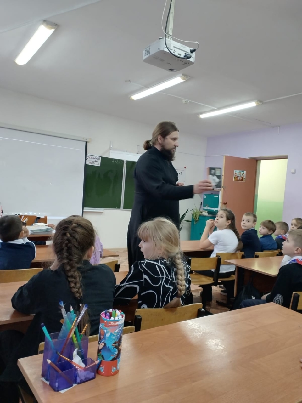 4 декабря 2025 года состоялась беседа в школе д. Глебово с клириком Вознесенского собора иер. Сергием Ефимовым о московских святых Алексее и Сергие Мечевых.