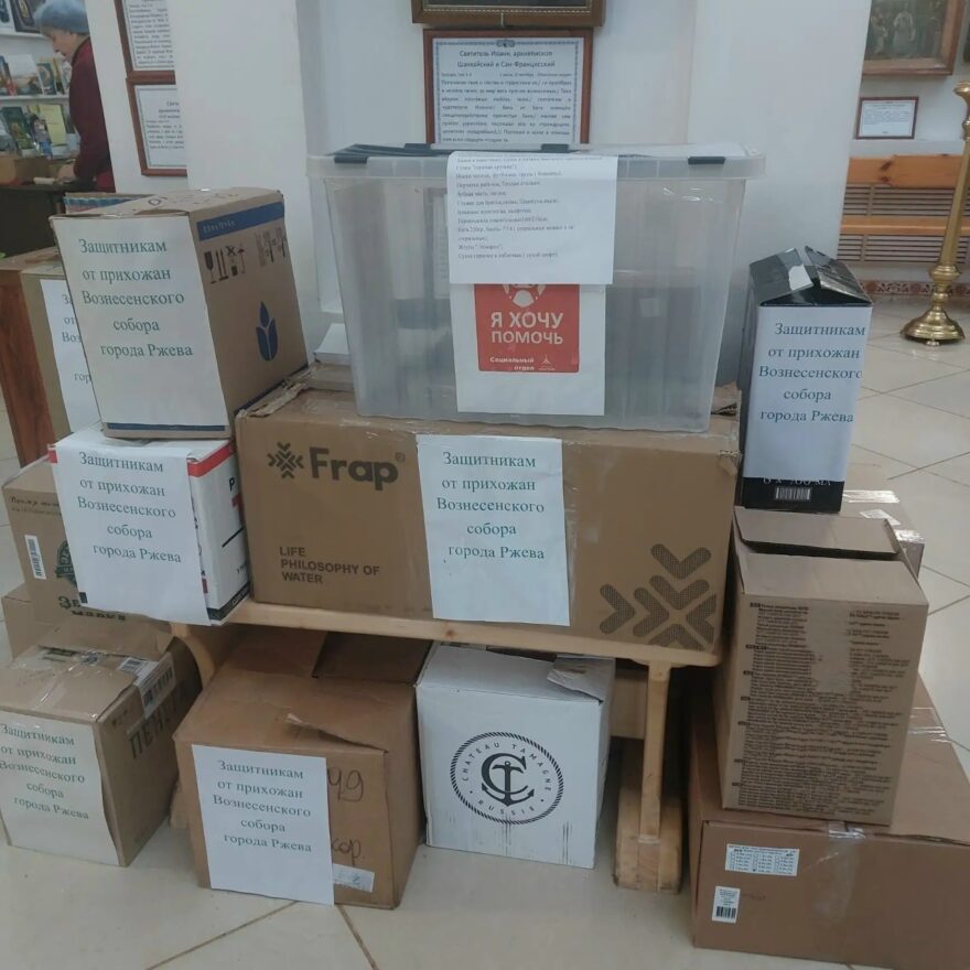 Прихожане Вознесенского собора г.Ржева собрали подарок для наших воинов в зоне СВО на Рождество Христово. Жертвовали тёплые вещи, сладкие подарки, медикаменты, балаклавы, средства личной гигиены и др.