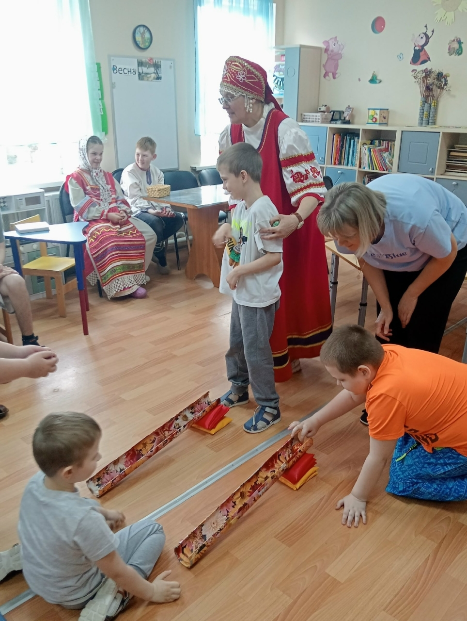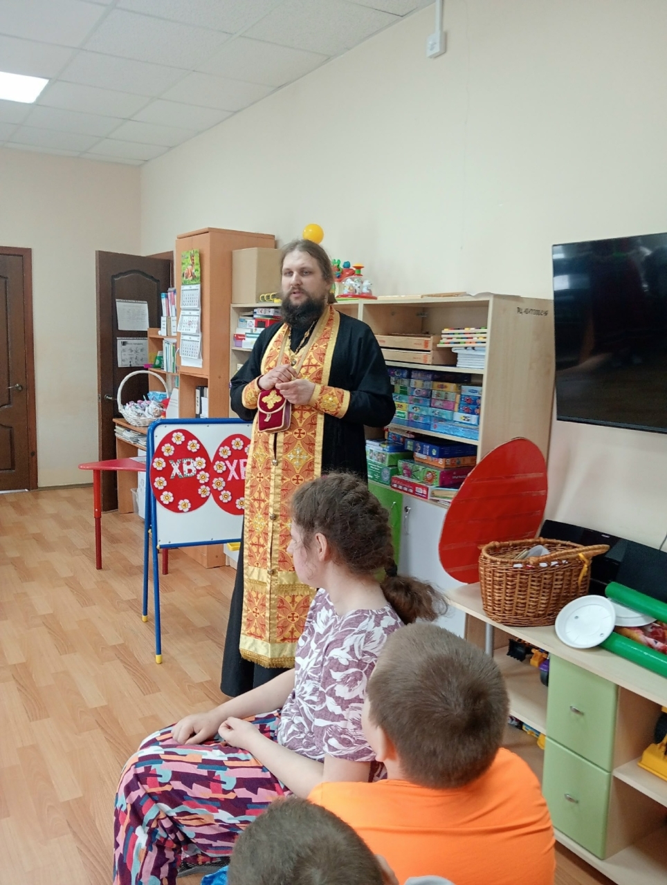 16 апреля воспитанники Воскресной школы при Соборе Вознесения Господня вместе с педагогом Татьяной Илларионовной и Отцом Сергием пришли поделиться Пасхальной радостью с детьми групп дневного пребывания нашего центра. Дети Воскресной школы показали сценку о том, как появилось Пасхальное яичко. Гости и воспитанники поиграли в тематические праздничные игры. А Отец Сергий рассказал о празднике Пасха и том, почему Христос Воскрес и вручил детям пасхальные подарки.