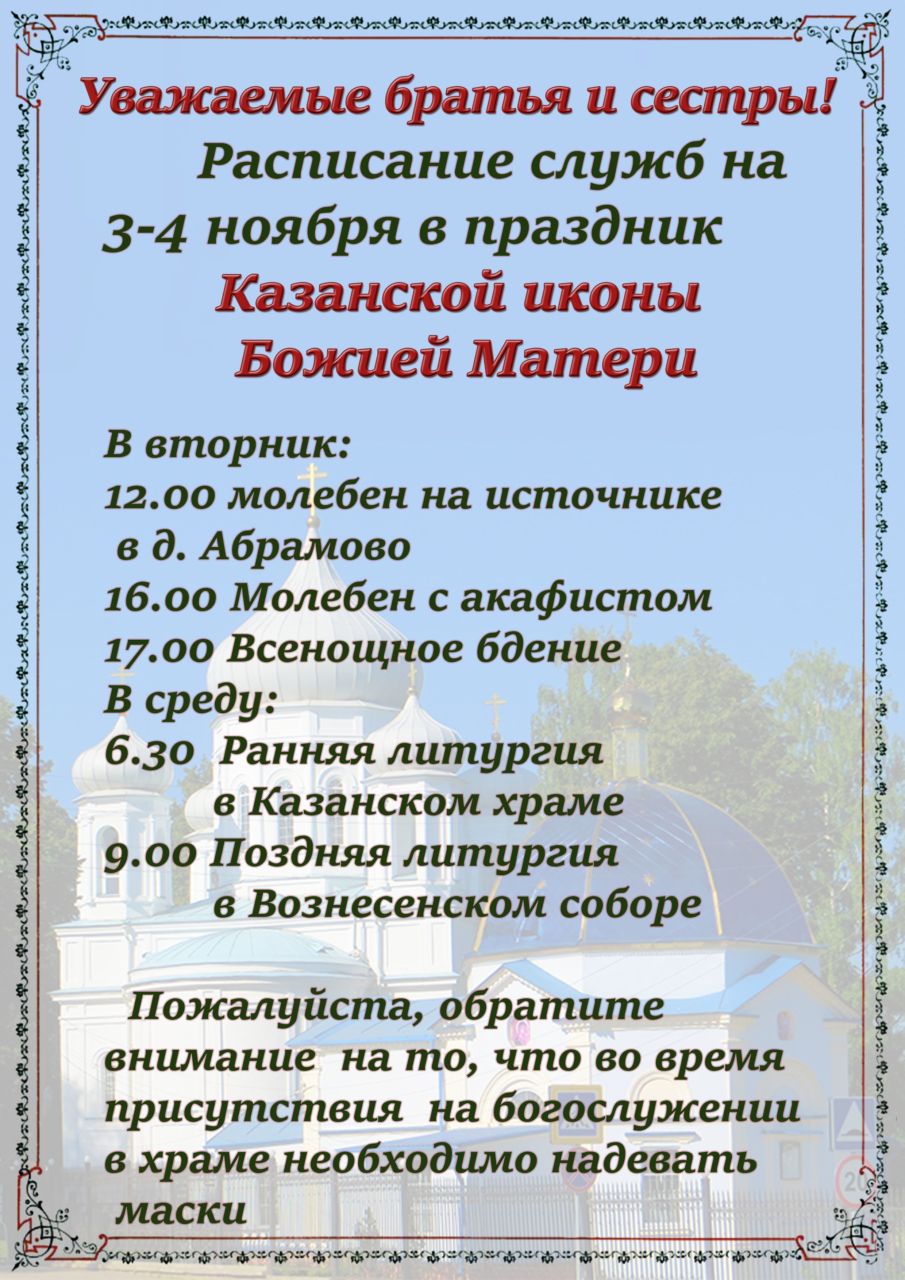 Главная страница Объявление о престольном празднике Казанская 1 Объявление о престольном празднике Казанская 1